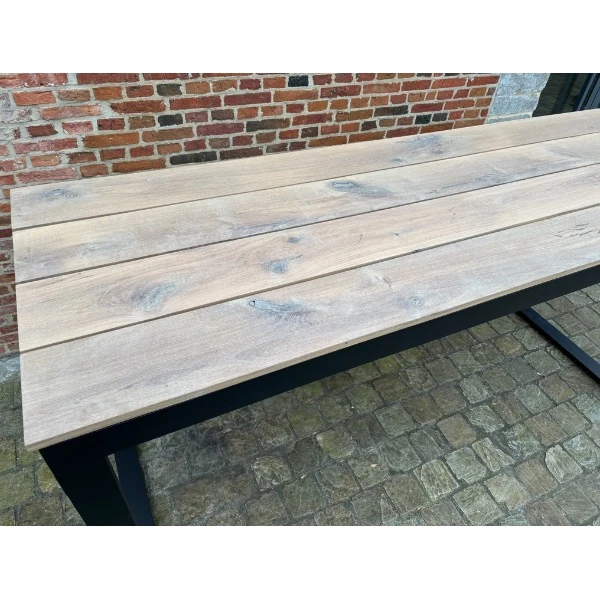 Zeer mooie tafel met keuze uit bladen die je er op wilt.