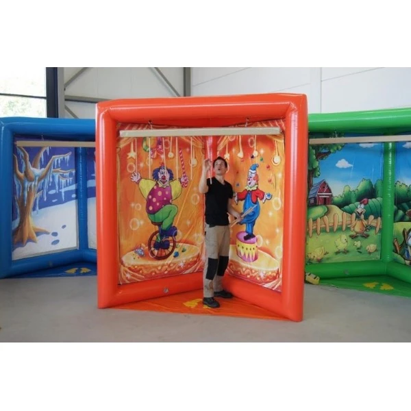 Een geweldig spel voor jong en oud. Het frame is luchtdicht. Dit houdt in dat het eenmalig opgeblazen dient te worden en voor de rest zonder blower functioneert. In de balk zitten 10 elektromagneten waar de kegels aan vast zitten, welke d.m.v. het bedieningskastje aan- en uitgeschakeld worden. Deze wordt gevoed door netstroom.