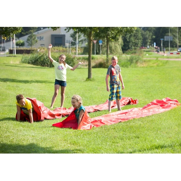 klaar voor de start, kruipen en wie als eerste aan de andere kant van de kruiptunnel is, is de glorieuze winnaar.