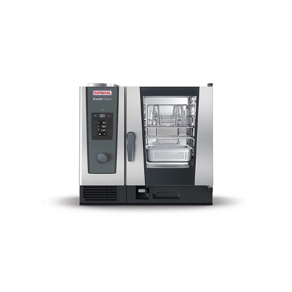 De iCombi® Classic 6-1/1 heeft 6 niveaus voor GN-toebehoren. Hierdoor kunt u op 6 niveaus tegelijk grillen, braden, bakken, stomen, stoven, blancheren of pocheren. De iCombi® Classic is een combi-steamer conform DIN 18866 voor de meeste in bedrijfskeukens toegepaste bereidingsprocessen voor het gewenste gebruik van stoom en hete lucht, afzonderlijk, achter elkaar of in combinatie.