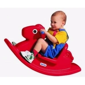 De kindjes beleven uren plezier op dit schommelpaardje.